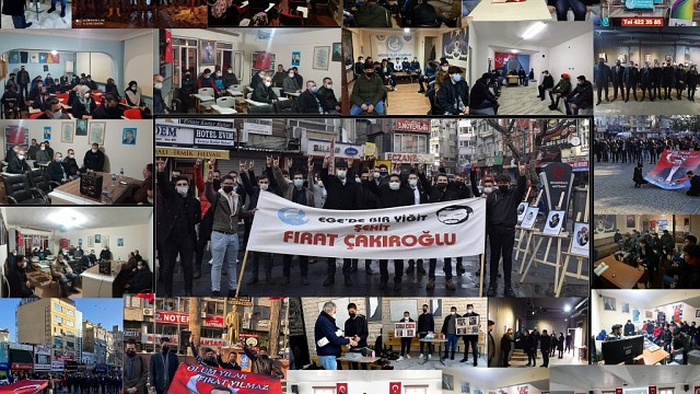 Ülkü Ocakları Eğitim ve Kültür Vakfı Balıkesir İl Başkanlığı, 20 Şubat 2015 tarihinde Ege Üniversitesi kampüsünde bölücü terör örgütü mensuplarının saldırısı sonucunda katledilen tarih bölümü öğrencisi ve Ülkü Ocakları Eğitim ve Kültür Vakfı Ege Üniversitesi Teşkilat Başkanı Fırat Yılmaz Çakıroğlu'nun 6. yıldönümünde il genelinde yaptığı çeşitli programlar ile andı. Fırat Yılmaz Çakıroğlu, Ülkü Ocakları Eğitim ve Kültür Vakfı Balıkesir İl Başkanlığı ve ilçe ocak başkanlıklarında gerçekleştirilen Kuran-ı Kerim tilavetleri, mevlid programları ve resim sergisi ile anıldı. Ülkü Ocakları Eğitim ve Kültür Vakfı Balıkesir İl Başkanı Kazım Çalışkan yaptığı açıklamada şunları dile getirdi: ''20 Şubat 2015 tarihinde Ege Üniversitesi tarih bölümünde öğrenim gördüğü sırada devletimizin bölünmez bütünlüğüne kastetmiş olan, bölücü terör örgütü mensuplarınca şehit edilen Fırat Yılmaz Çakıroğlu'nun asırlar boyu sürecek olan kahramanlık menkıbesini nesilden nesile aktarabilmek, verdiğimiz kutsal mücadeleye canı ile hizmette bulunan ülküdaşımız, ağabeyimiz Fırat Yılmaz Çakıroğlu'nun isminin gelecek nesillerin gönüllerine ve hafızalarına nakşedilmesi adına il başkanlığımız koordinesinde ilçe teşkilatlarımız ile beraber anma faaliyetlerimizi gerçekleştirmiş bulunuyoruz. Cenab-ı Allah bu kutsal hizmette emeği bulunan bütün ülküdaşlarımızdan razı olsun. Fırat Yılmaz Çakıroğlu nezdinde tüm şehitlerimize Allah'tan rahmet dilerim.