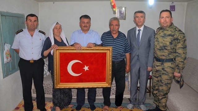 Balıkesir Valisi Ersin Yazıcı, Şehit Polis Memuru Hasan Aydoğan'ın Edremit'te yaşayan ailesini ziyaret etti. Vali Yazıcı, şehitlere Allah'tan rahmet, yakınlarına başsağlığı dileyerek, şehitlerin emanet olarak bıraktıkları ailelerinin her zaman yanında olacaklarını, kapılarının da her zaman şehit aileleri ve gazilerimize açık olduğunu dile getirdi. Şehidin ailesiyle yakından ilgilenen Vali Yazıcı, her zaman olduğu gibi bundan sonra da vatan için eşlerini, evlatlarını şehit veren ailelerin yanında olmaya devam edeceklerini ifade etti. Devletin ve vatanın bölünmez bütünlüğü için canlarını feda eden şehitlerin haklarının asla ödenemeyeceğini ifade eden Vali Yazıcı, "Bizler ne yapsak vatan uğruna, bayrak uğruna evlatlarını şehit veren ailelerin acısını dindiremeyiz. Devletimizin imkanları kendilerinin hizmetindedir." dedi. Vali Ersin Yazıcı, şehidin ailesine zeytin fidanı ile Türk Bayrağı işlenmiş motifli halıyı hediye etti. Ziyarette Vali Yazıcı'ya Edremit Kaymakamı Ali Sırmalı da eşlik etti. (İHA)