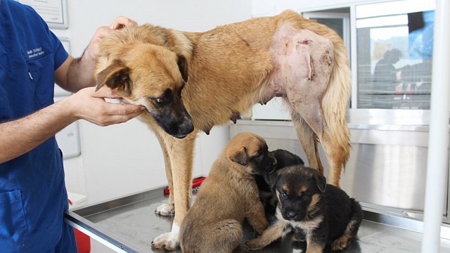 Vicdansızlar 3 yavrusu olan sokak köpeğini av tüfeğiyle vurdu