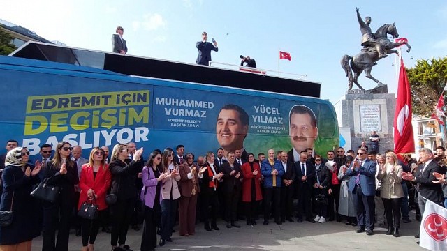 Daha sonra kürsüye çıkan AK Parti Edremit Belediye Başkan Adayı Muhammed Vurmaz ise coşkulu kalabalığın alkışları ve büyük tezahüratları eşliğinde konuşmasına başladı. Vurmaz konuşmasında, “Memleket için bir yola çıktık. İlk gün dediğimiz gibi kapı kapı, sokak sokak çıkmadık merdiven çalmadık kapı bırakmayıncaya kadar çalışıyoruz Artık son günlere geldik. Edremit’imizin karar zamanı geldi. Edremit’imizin 5 yıl daha nasıl yönetileceğinin kararının verileceği gün geldi çattı. Kendimizi ifade etmemiz lazım ki artık Edremit’te değişim başlasın. Her işin zorluğu var. Ama memleketimiz için değer. Sizlerin her şeyin en iyisine layıksınız. Edremit’imiz farklı kimliklerin bir arada yaşadığı Türkiye’nin gözbebeği bir ilçemiz. Ben burada doğmuş, doymuş ve hayatını burada idame etmiş herkese sesleniyorum. Edremit için bize bir omuz vermenizi istiyorum. Çünkü Edremit’in dayanacak gücü kalmadı. Edremit’imiz son yıllarda görmesi gereken ilgi ve alakayı maalesef göremedi. Maalesef 50 gündür sahalardayız. Üzülerek söylüyoruz ki Edremit için ne yapabiliriz diye halkımıza sorduğumuzda yollarımız diyorlar. Astronotumuz uzaya çıktı ama hala Edremit’imizin yol sorunu var. Bundan inanın utanç duyuyorum. Bunun bir tek sebebi var bunun sebebi vizyonsuzluk ve hakikaten şehrini sahiplenmemektir. Artık Edremit’imiz çaresiz değil, biz buradayız. Bizler projelerimizle sizlerin huzurunuzdayız. Kısır siyaset anlayışını gütmedik. Edremit’imizin deprem gerçeği var. Ben diyorum ki 2000 yılı öncesi binaların umudu olmalı. Kendi binalarını dönüştürmek isteyen her vatandaşımıza belediye imkanlarını kullanıp, ilçemizin konut sorununu yenileyeceğiz. Edremit’imizin otopark sorunu var. Bizler şehir içine gitmek istediğimizde ayaklarımız geri geri gidiyor. Yapacağımız çözümlemelerle sorunu gidereceğiz. Millet bahçeleri, düzenlenmiş yeşil alanlar, çocuklarımızın gidebileceği oyun alanları Edremit’te artık hayal olmayacak. Bunları gerçekleştireceğiz. Yaz nüfusu artıyor. Altınkum ve Altınoluklu vatandaşlarımıza sesleniyorum. Altınkum’a Bilim sanat Merkezi yapacağız. Büyükşehir Belediye Başkanımızın yaptığı hizmet. Edremit daha iyi yönetilmeli. Memleketi için yanıp tutuşan, sizlere çalışmak için söz veren bu kardeşinize sahip çıkacak mısınız? Altınoluk’a bir spor salonu ve yarı olimpik yüzme havuzu kazandırmak istiyoruz. Edremitspor’a bir tesis kazandırma sözü aldık. Bizler Edremit için hayalci değil, gerçek projelerle hareket edeceğiz.