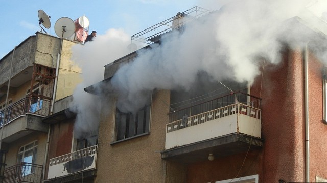 Balıkesir’in Edremit ilçesinde çıkan yangında 5 kişilik aile dumandan zehirlenerek hastaneye kaldırıldı. Hekimzade Mahallesi Değirmen Önü Caddesi'nde meydana gelen yangında, üçüncü kattaki ev kısa sürede alevlere teslim oldu. Yangına müdahale etmeye çalışan Emrah D., Reyhan D. ve üç çocuğu dumandan zehirlendi. Yangını gören komşular ve polis ekipleri tarafından kurtarılan ev sakinleri daha sonra 112 ambulansları ile Edremit Devlet Hastanesi'ne sevk edildi. Yangına 5 itfaiye ekibi müdahale etti. Yangın sırasında çok sayıda polis ve sağlık ekibi de görev yaptı. Dumandan zehirlenen ailenin tedavi altına alındığı ve hayati tehlikelerinin olmadığı öğrenildi. Elektirik kontağından çıktığı düşünülen yangınla alakalı tahkitat sürüyor. (İHA)