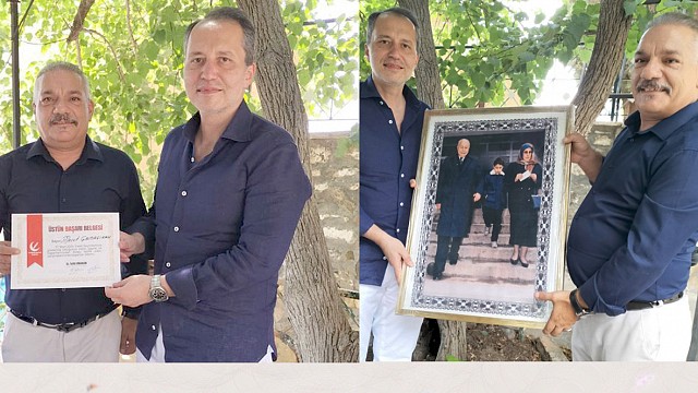 Yeniden Refah Partisi Genel Başkanı Dr. Fatih Erbakan, 31 Mart yerel seçimlerinde Edremit Belediye Başkan Adayı olan Mesut Çamaçıkan’a gayret ve çalışmalarından dolayı üstün başarı belgesi takdim etti. Yeniden Refah Partisi Genel Başkanı Dr. Fatih Erbakan geçtiğimiz günlerde; Genel Başkan yardımcısı Mehmet Altınöz ve Edremit teşkilatıyla Narlı köyünde Cuma namazını birlikte eda ettikten sonra çay bahçesinde sohbet ettiler. Genel Başkan Dr. Fatih Erbakan, Ülkemizin ekonomik sosyal durumu ve gelişmeler hakkında Edremit teşkilatına hitap etti. Yeniden Refah Partisi Genel Başkanı Dr. Fatih Erbakan ayrıca, 31 Mart yerel seçimlerinde Edremit Belediye Başkan Adayı olan Mesut Çamaçıkan’a gayret ve çalışmalarından dolayı üstün başarı belgesi takdim etti. Mesut Çamaçıkan da Genel Başkanı Dr. Fatih Erbakan’a çocukluk zamanı fotoğrafı olan Erbakan ailesinin Halıya dokunmuş resimlerini hediye etti.