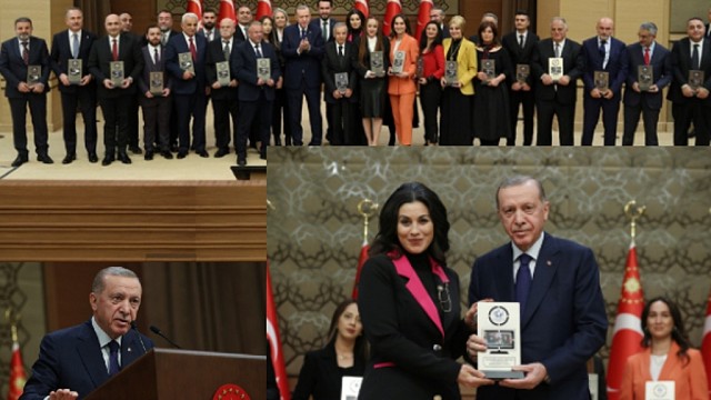 Cumhurbaşkanı Erdoğan, gerçeğin peşinden koşmak yerine yerel ve küresel güç odaklarına tetikçilik yapanlara rağmen mücadelelerini yürüttüklerini vurgulayarak, "Duruşumuzu hiçbir zaman bozmadık. Yalan ve iftiraya asla teslim olmadık. İtibar suikastları karşısında geri adım atmadık. Haysiyet fukaralarının tehditlerine boyun eğmedik. Karşımızdakiler ne yaparsa yapsın, biz daima hakkın ve hakikatin hatırını üstte tuttuk" diye konuştu. Milletle ve millî iradenin sesi olan basın yayın kuruluşlarıyla omuz omuza hareket ederek, tarihî nitelikte pek çok demokratik kazanıma imza attıklarını dile getiren Cumhurbaşkanı Erdoğan, "İnşallah Türkiye Yüzyılı'nı da medyamızla birlikte yükseltecek ve gençlerimize emanet edeceğiz" dedi. Cumhurbaşkanı Erdoğan, Türkiye'nin yaşadığı tüm bu olumsuzluklara rağmen son 20 yılda demokrasiyle birlikte basın ahlakı ve hürriyetinde de bir seviye atladığını ifade ederek, şöyle konuştu: "Ülkemizin basın yayın tarihini bilen ve elini vicdanına koyup objektif bir muhasebe yapan herkes medyamızın bugün daha bağımsız, daha çoğulcu, daha zengin bir yapıya sahip olduğunu kabul edecektir. Gerçekten de 2023'ün Türkiye'sinde basın 90'lara, 80'lere, 70'lere göre çok daha özgürdür, serbesttir, halkın gözünde daha çok itibar kazanmıştır. Hangi cenahta yer alırsa alsın basın yayın kuruşları asli görevlerini hakkıyla yerine getirebilme salahiyetine bizim dönemimizde kavuşmuştur.”