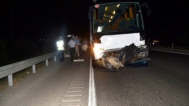 Yolcu otobüsü otomobili ikiye böldü, 2 ölü