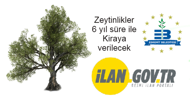 Edremit Belediye Başkanlığı'na ait zeytinlikler 6 yıl süre ile kiraya verilecektir.